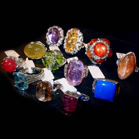 - 925 silver rings are embellished with assorted semi-precious stones and gemstones.