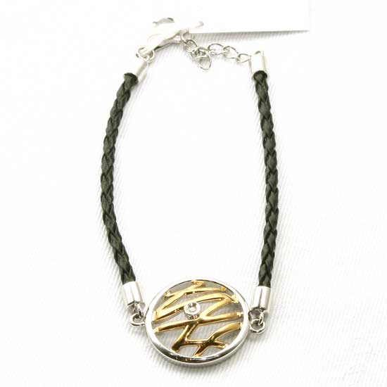 The bracelet is accentuated by its round-shaped charm with delicate cutout details. The charm is made of refined 925 sterling silver, which is plated with gold for enhanced attractiveness. This accessory also goes with braided straps in stylish ebony.