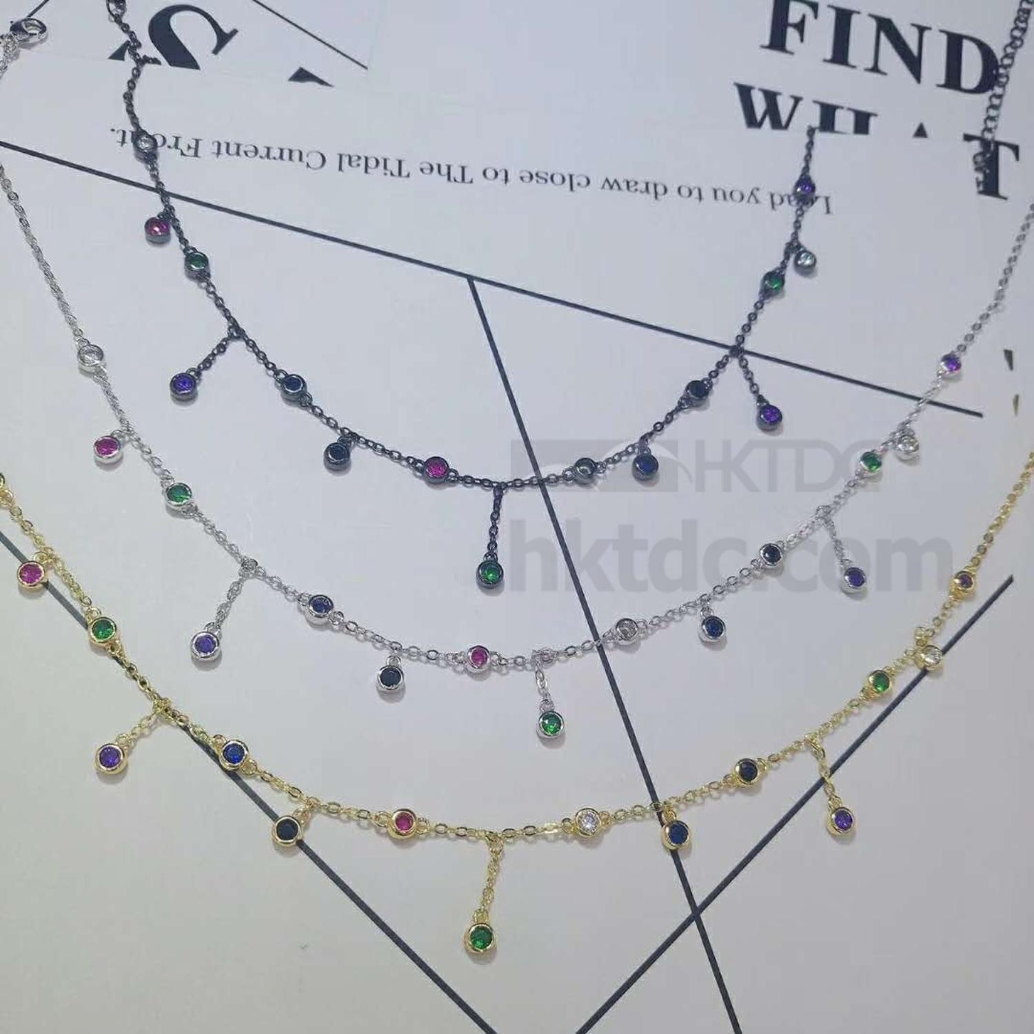925 sterling silver CZ drop choker necklace for women
