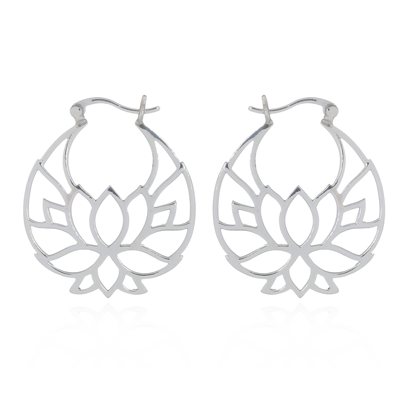 925 Sterling Silver Figured Lotus Hoop Earrings
