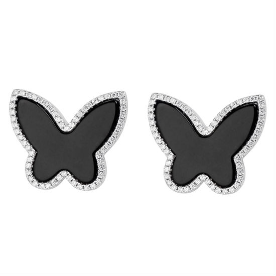 925 Sterling Silver Fine Earring AAA Lever CZ and Black Agate