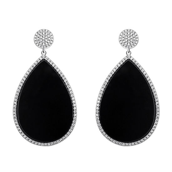 925 Sterling Silver Fine Earring AAA Lever CZ and Black Agate