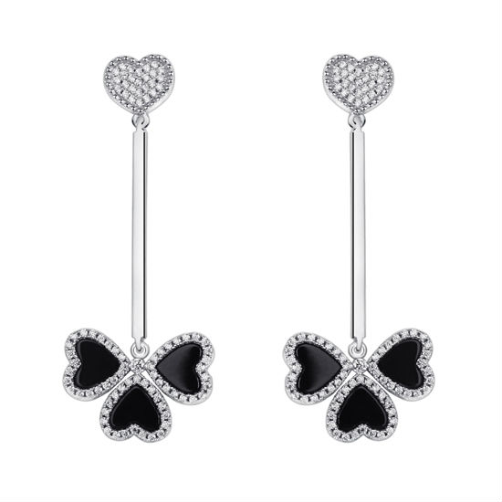 925 Sterling Silver Fine Earring AAA Lever CZ and Black Agate