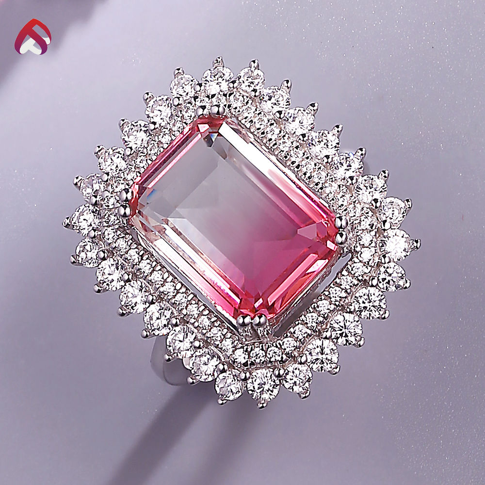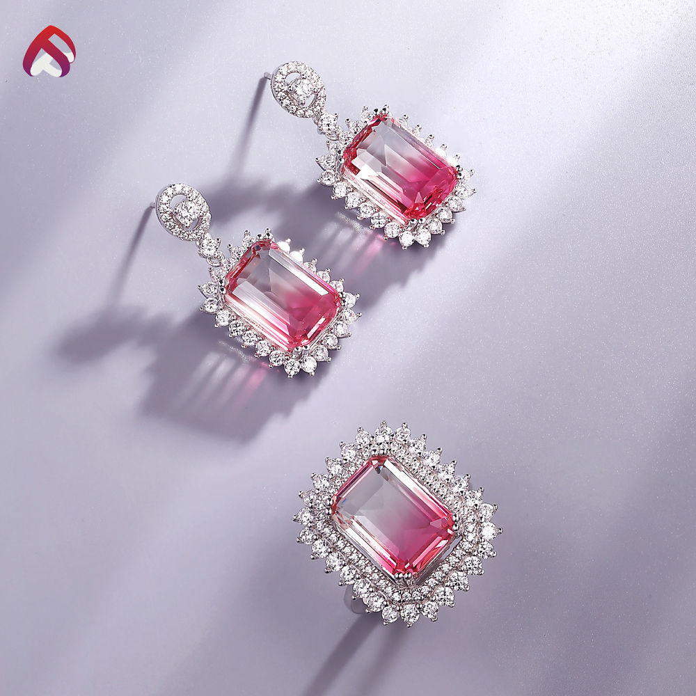 White cz + white pink glass, rhodium plated.