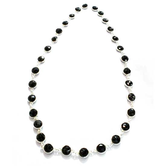 The dashing ladies' necklace flaunts a well-executed design for outstanding shine. It is finely crafted with top-grade 925 sterling silver to radiate a glow of glamor that you simply cannot resist. This ravishing 925 sterling silver necklace is perfected by dark-color gemstones in different sizes for ultimate beauty.