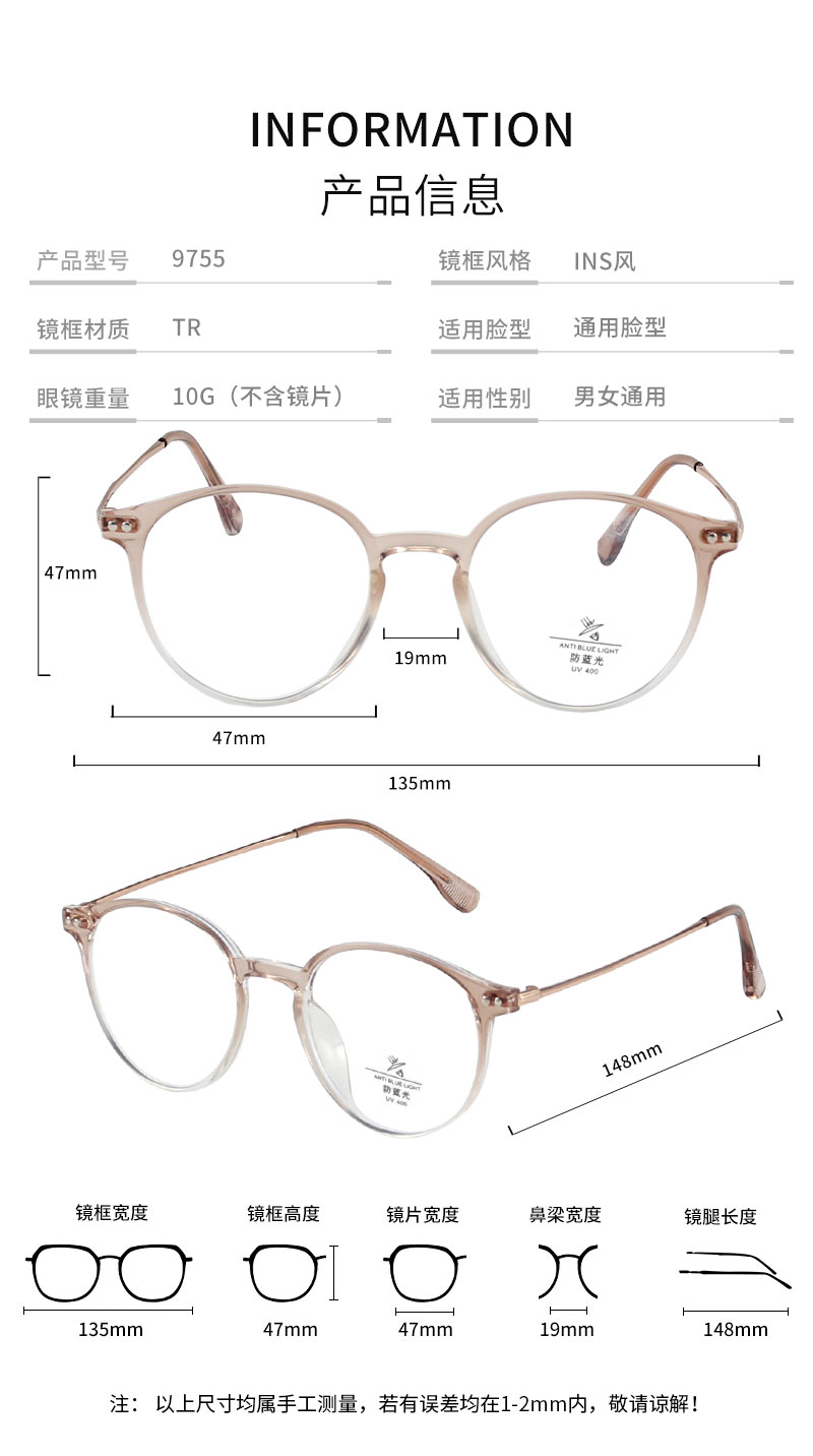Weight: Only 10g(Without lens), comfortable without pressure, suitable for face.