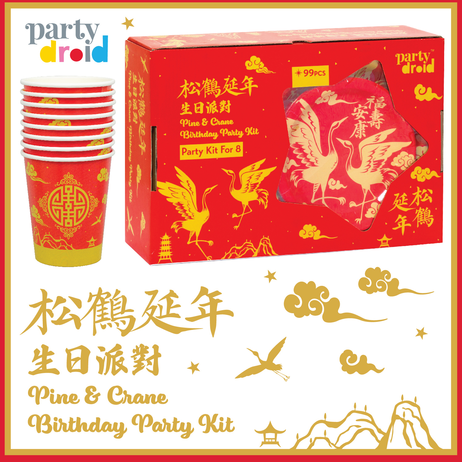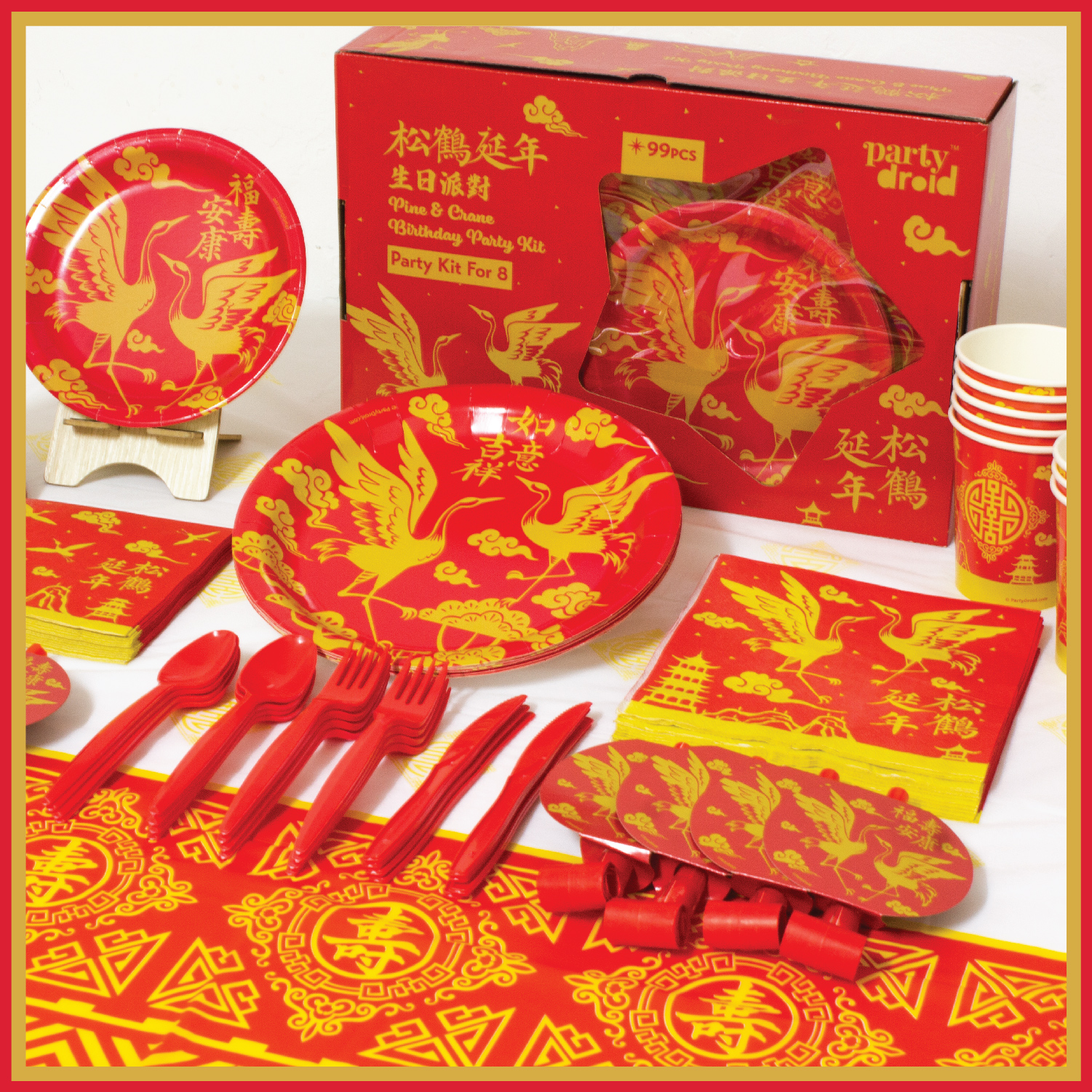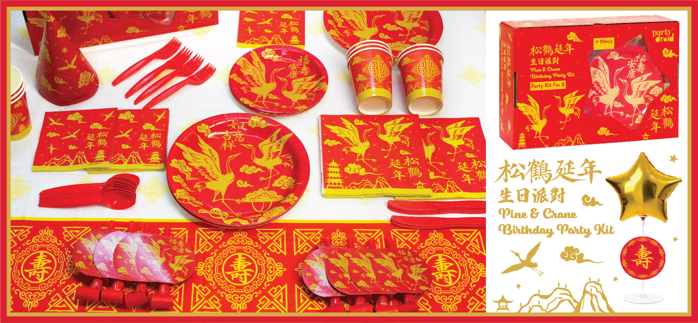 - Total 99 pcs, 8 sets of tableware and decoration: Table Cover, Dinner Plates, Dessert Plates, Luncheon Plates, Dessert Plates, 9oz Cups, Cutlery; ‘Happy Birthday’ Letter Banner, ‘Happy Birthday’ DIY Balloon Centerpiece, Party Hats, Party Blowers.