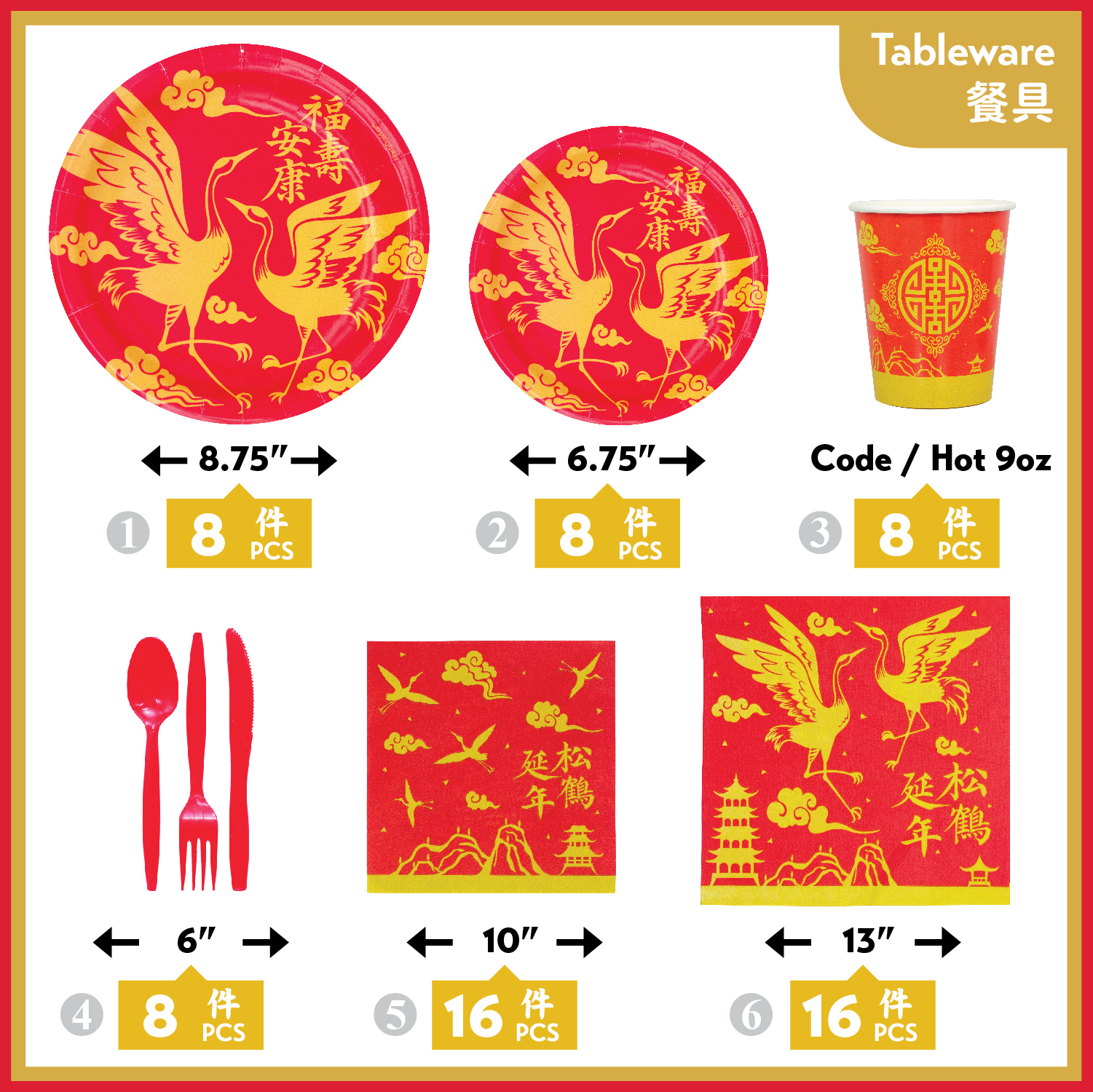 - High-bulk Paper plates and Cups, double-layer Napkins.