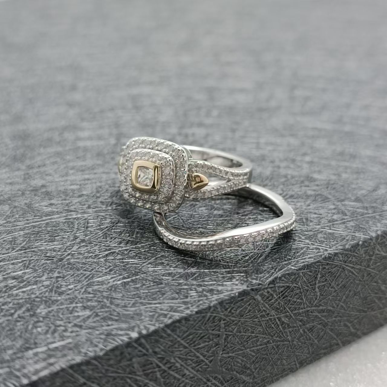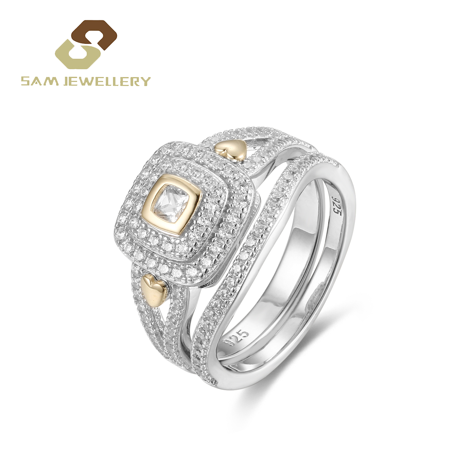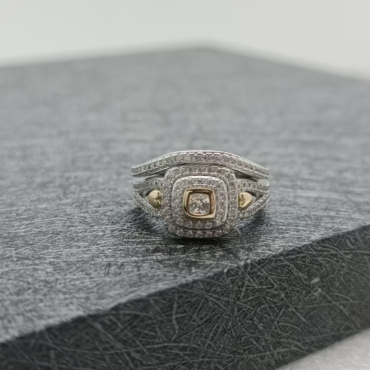 Romantic Stackable Ring 9K Gold And Sterling Silver Ring Set with Sparkling CZ and 9K Gold Heart Design