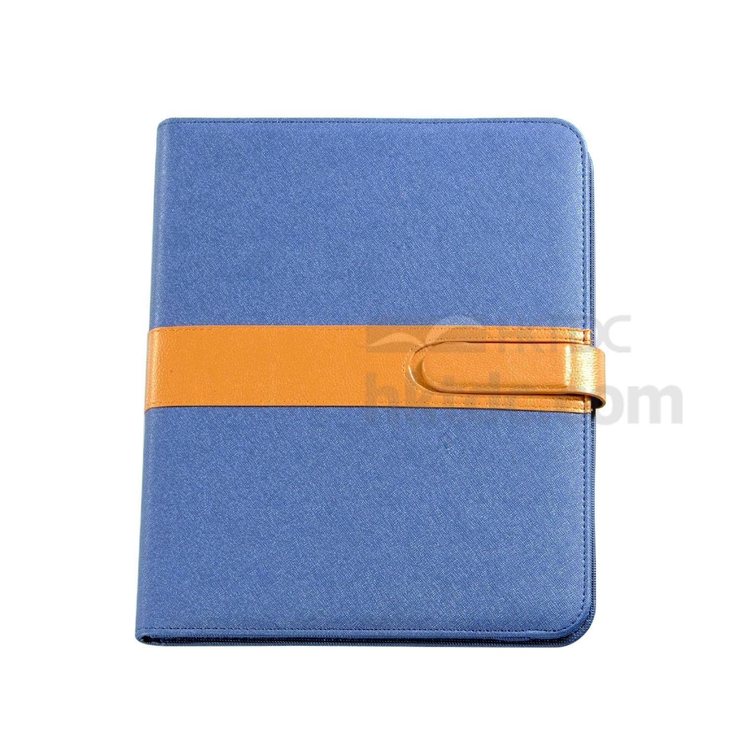 A calculator and 30sheets 70g notepad inside,4 namecard slots and 2 zipper pockets for documents