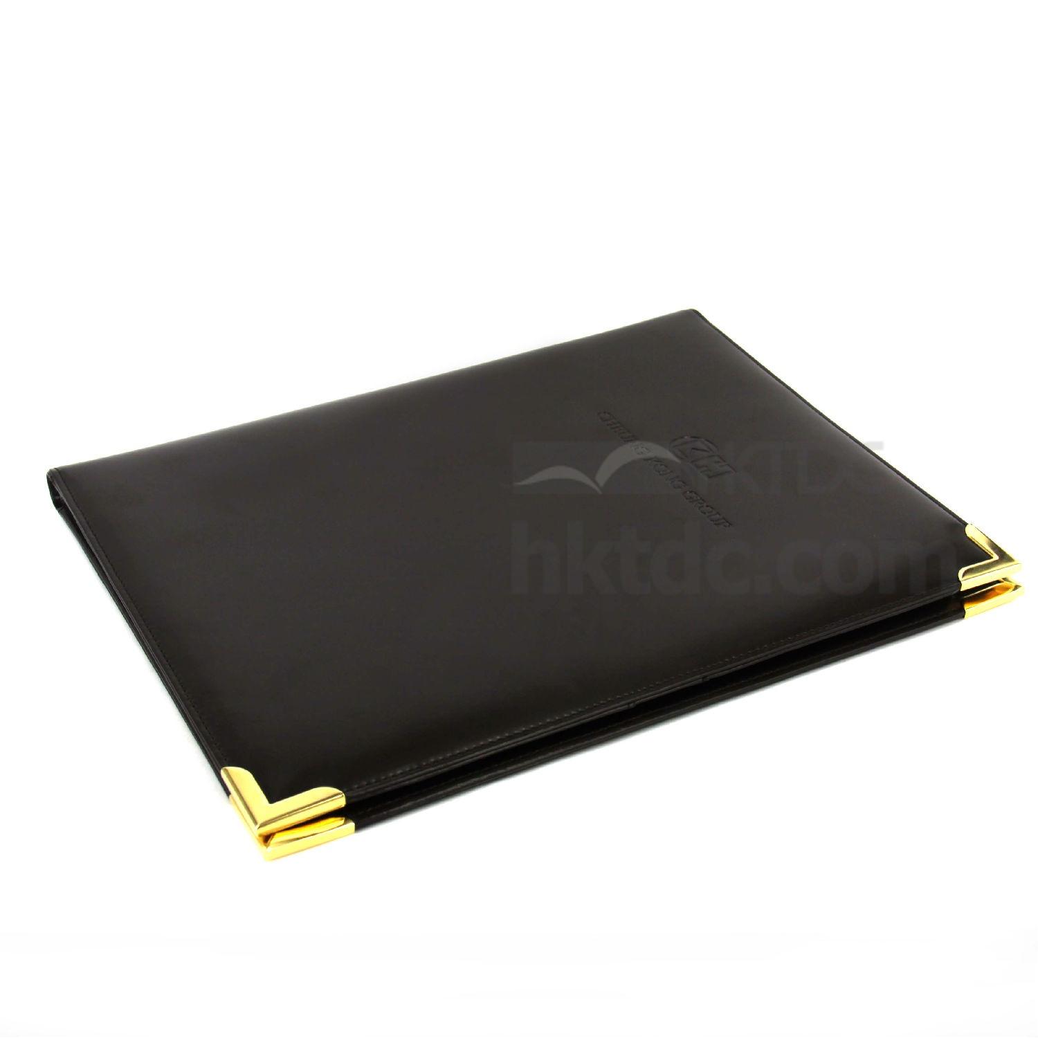 This leather folder opens up to a full spread crafted with multiple slits for storing different documents. It comes in an A4-size to fit into any full-size briefcases. This leather folder is embossed with brand logos, making it perfect for promotional and advertising use.