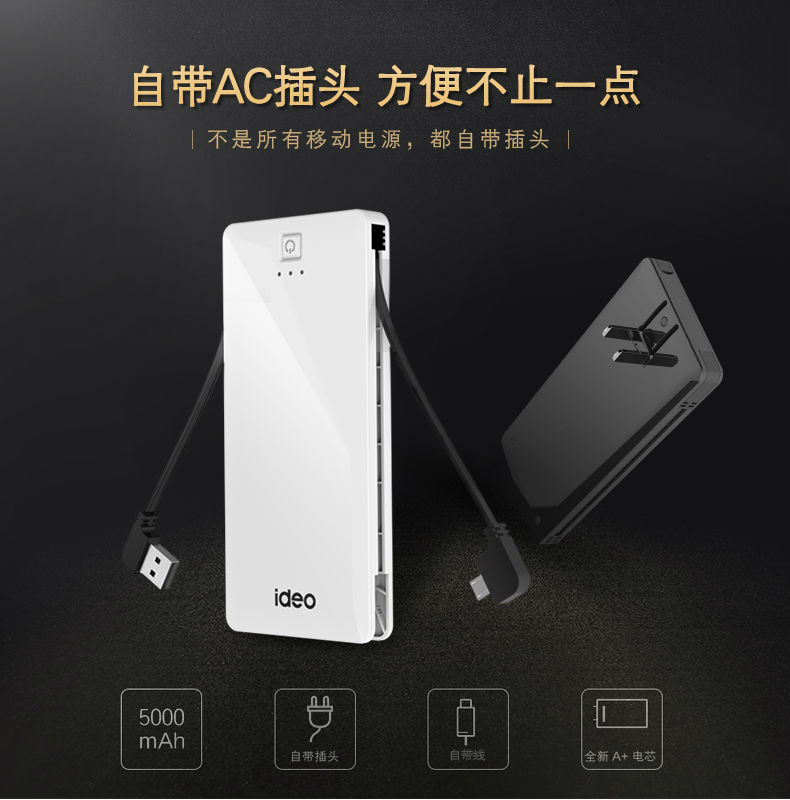 Built in AC plug,foldable ,safe and durable dual input ac plug in 3 in 1 power bank,ac adapter and charging cable ideal journey partner recharging devices power bank simultaneously via ac plug