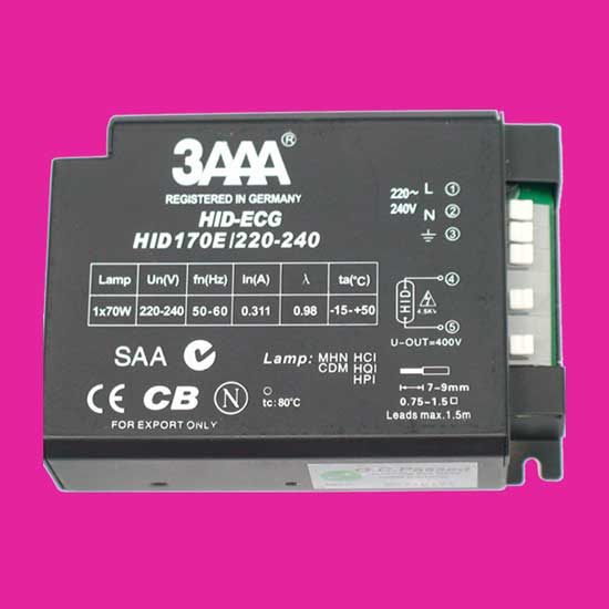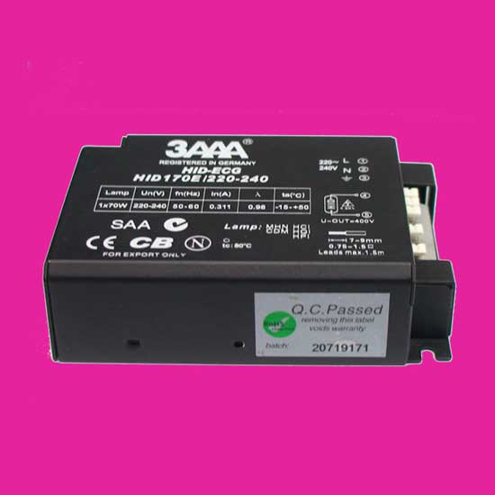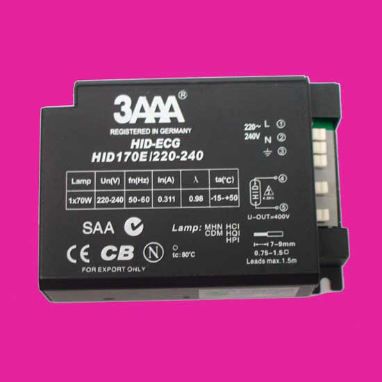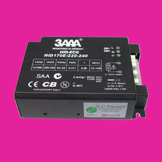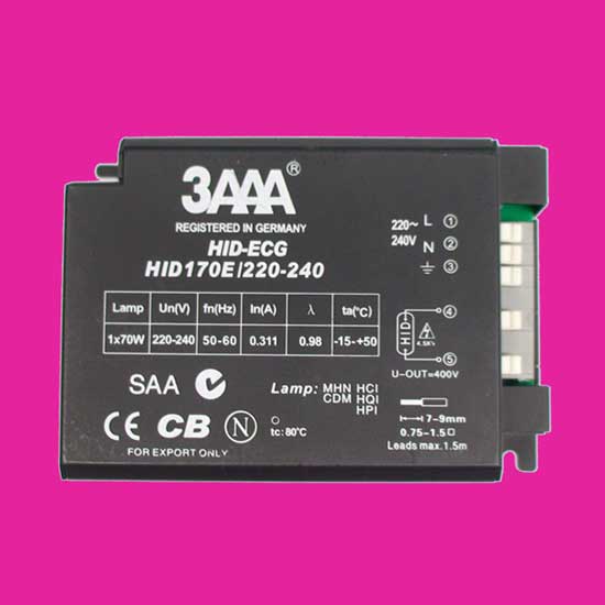 This AC-powered electronic ballast is specially designed for HID lamps. The electronic ballast is constructed of a rugged housing to withstand daily wear. The compact and lightweight design makes is perfect to accompany with any modern lighting equipment.