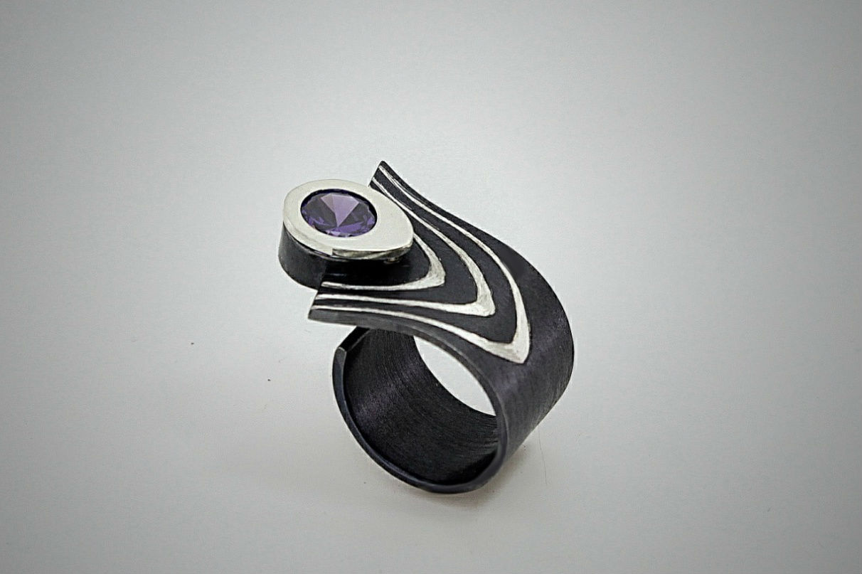 Ring made of black rhodium plated silver with zirco