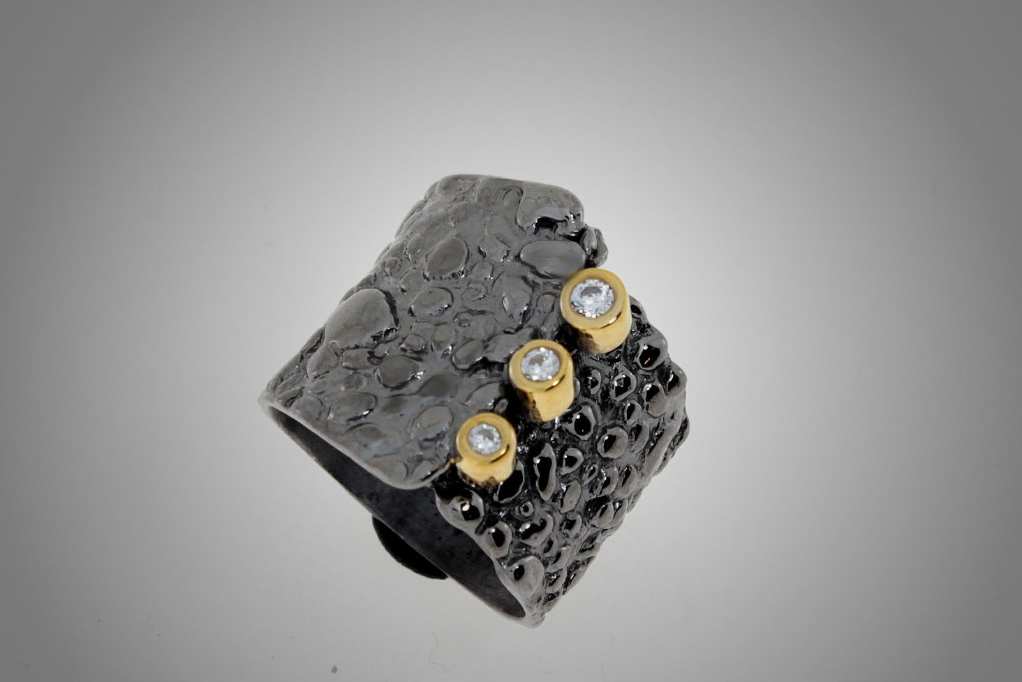 Ring made of black rhodium and gold-plated sterling silver with cubic zirconia