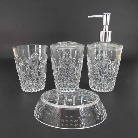 Acrylic Bathroom Accessory Set Embossed Treasure Mirror Design