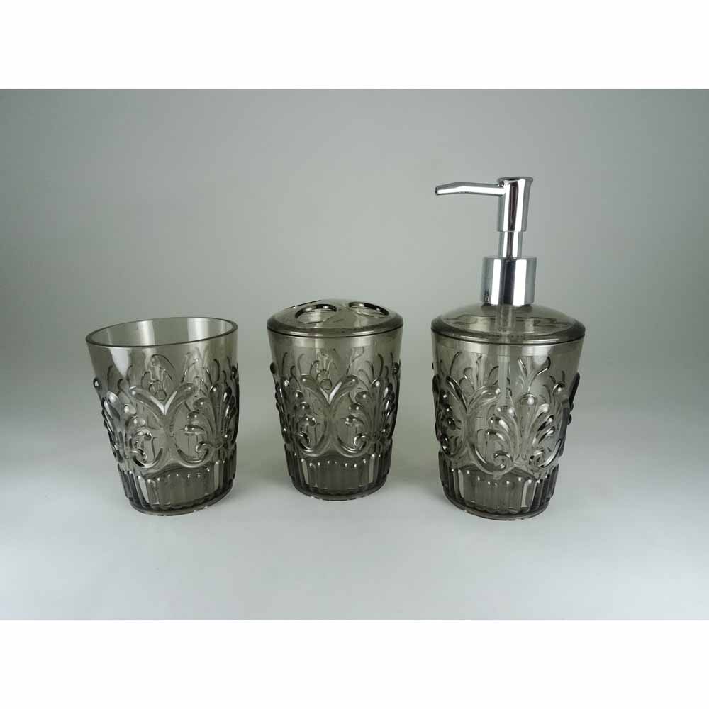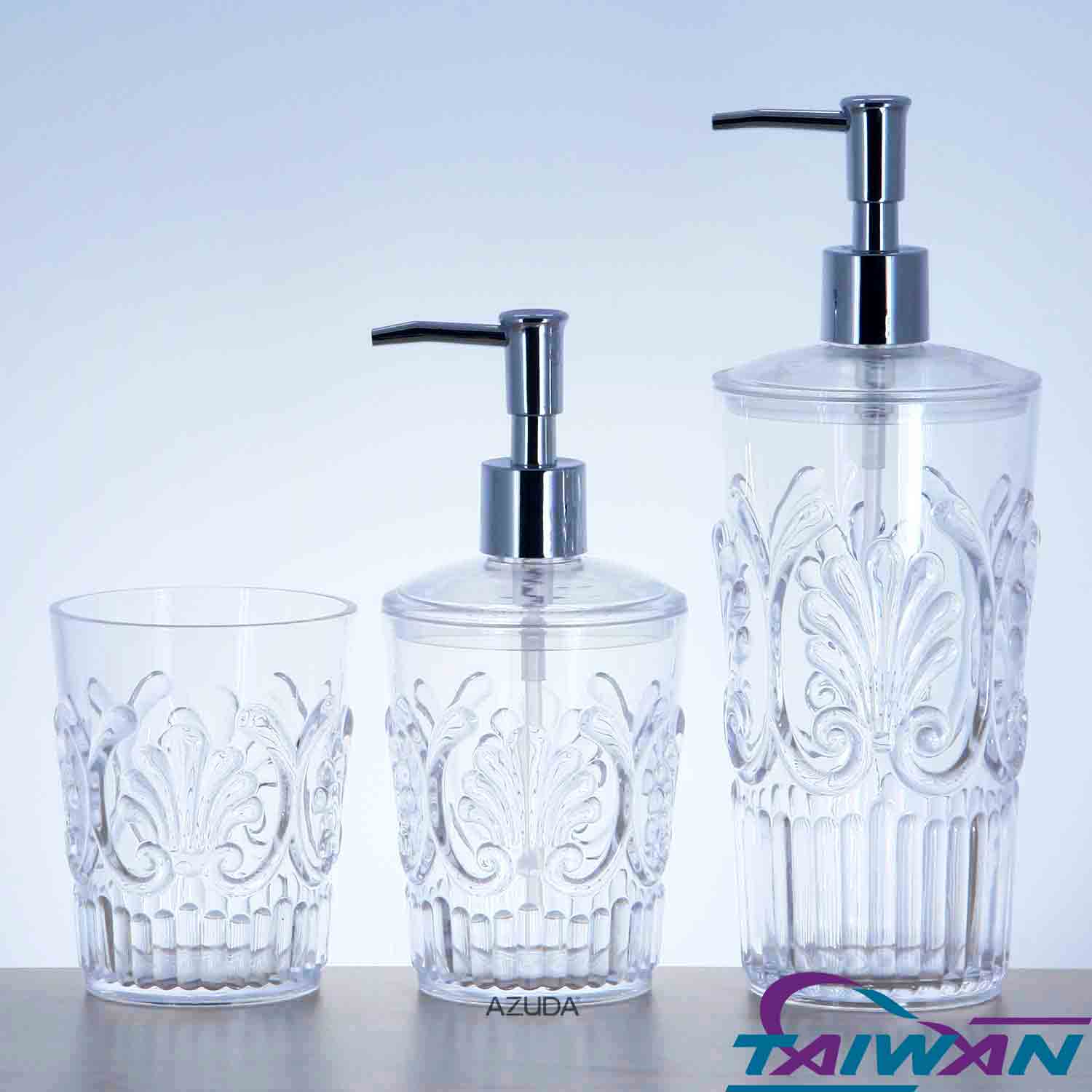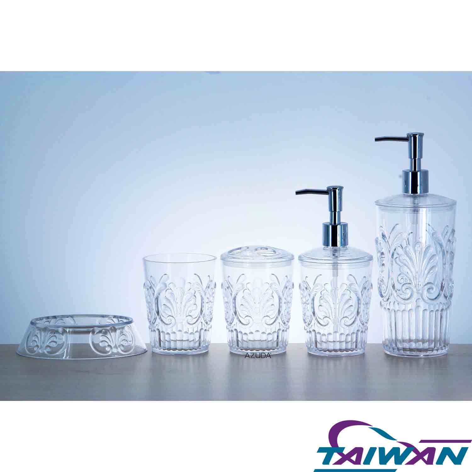 Acrylic Bathroom Accessory Set Embossed Flower Design