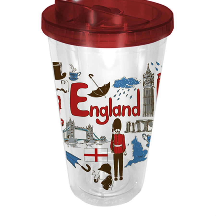 This acrylic insulated tumbler provides an eco-friendly and gorgeous alternative to disposable cups. It comes designed with England-style graphics on a clear body, including an anti-spill lid and a handy straw for drinking convenience. Stay hydrated whether you are at home or in the office with this handy tumbler.