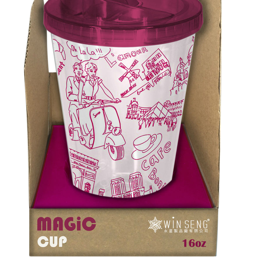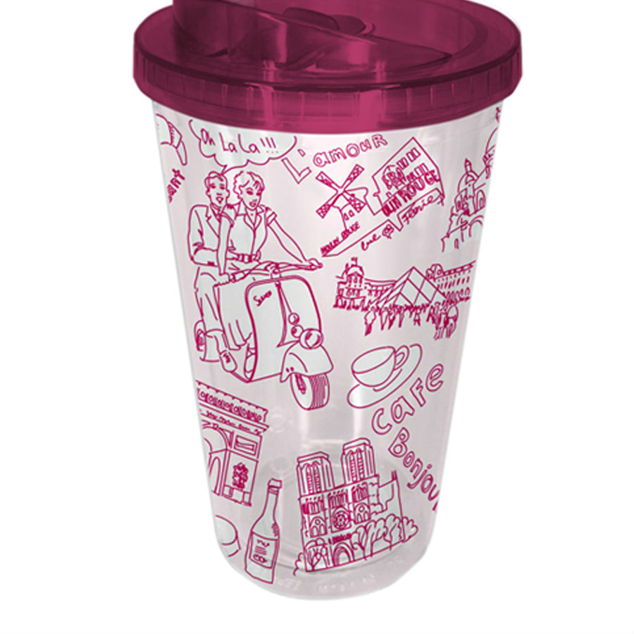 The acrylic tumbler features a break-resistant construction. Crafted with a transparent body, it catches eyes with the delightful illustrations. It holds 16 ounces of your favorite beverage, providing a handy way for sipping without spilling the liquid out while on the go on with a lid and straw.