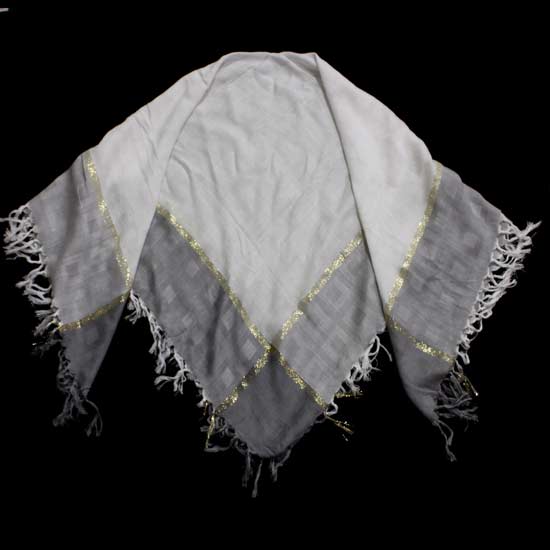 The fashionable ladies' scarf boasts an easy-to-match design for your all-season wardrobe. The unpretentious white color and subtle square-shaped patterns are classed up by the sparkling golden details for a dashing look. Perfected by fine tassels on the edges, this ladies' scarf makes a big fashion statement with elegance.
