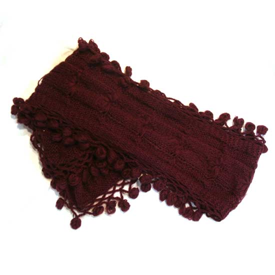 The shawl showcases delicate knitted patterns. The ball-shaped fringes add a decorative touch to it. This shawl is an excellent article to keep you warm in winter days.