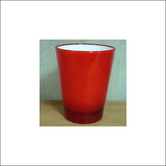 An acrylic tumbler with 2 colour tones of white and red.