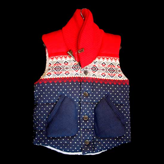 This lovely vest comes with a red ribbed collar for a captivating look. The stylish geometric patterns add spices to the vest easily. This acrylic vest injects a vibrant touch to the dull winter days.