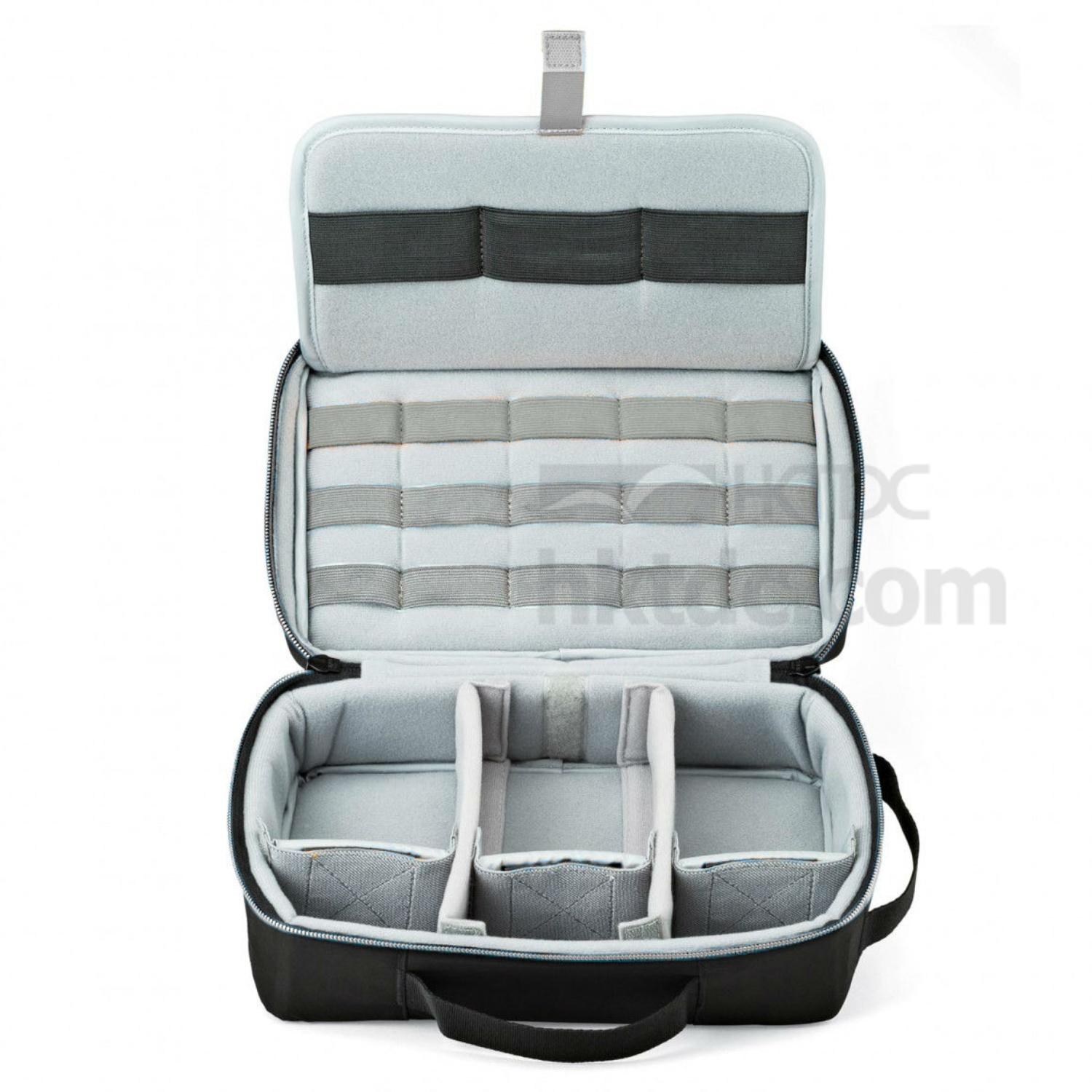 • Removable action camera case built to fit the depth and form factors of today's most popular models. Design included adjustable dividers and a wall of with accessory straps to keep mounts, cables, batteries and such neat and secure.