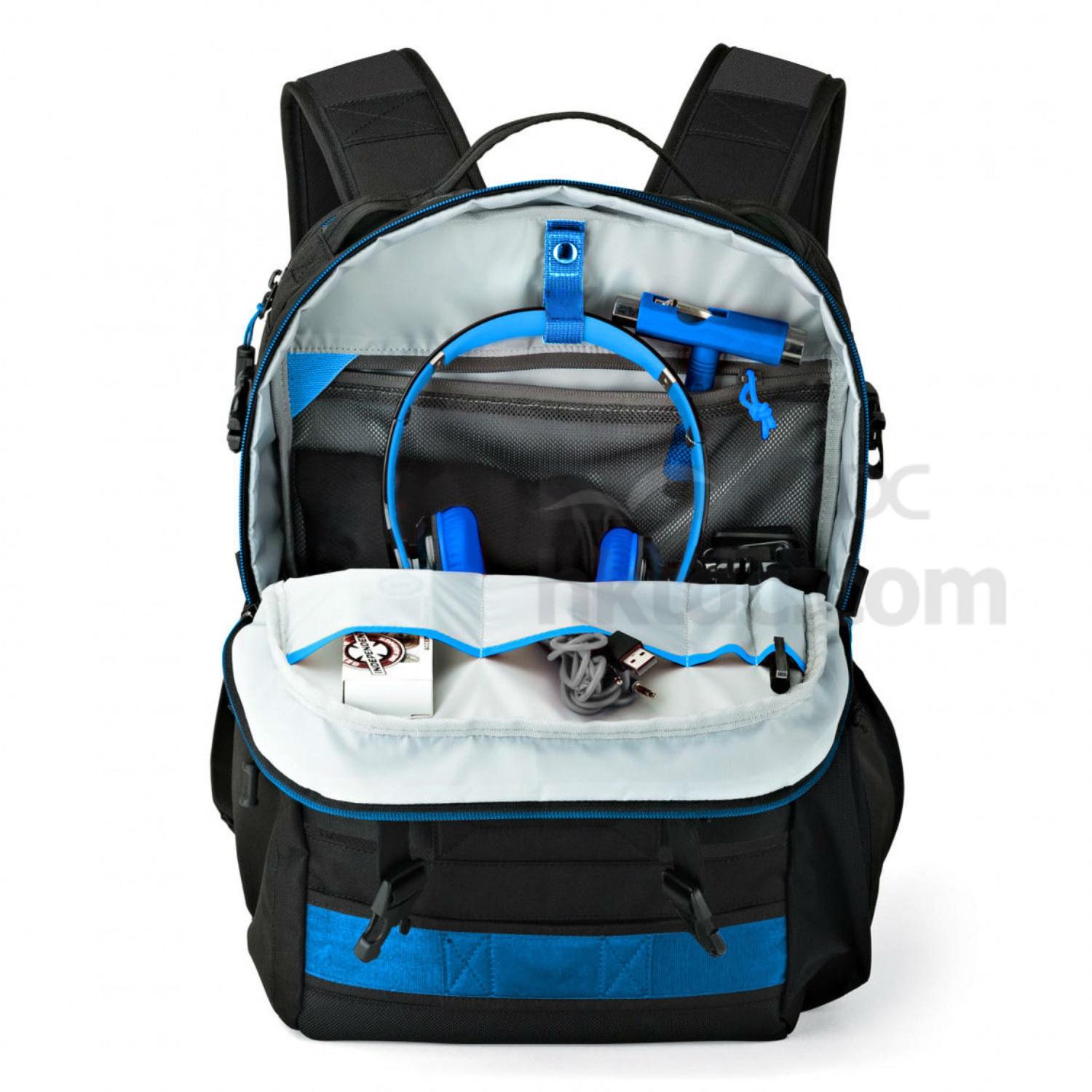 Flexible backpack with roomy upper compartment for day's essentials, an included and removable action camera case, plus a smart system of outer straps, come with quick-release straps to secure a tripod, skateboard, trekking poles, etc.