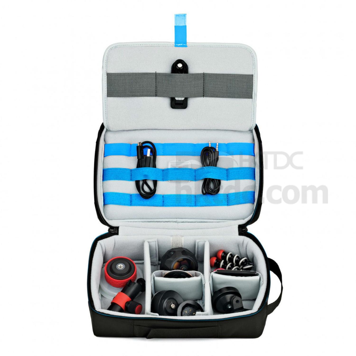 Removable action camera case built to fit the depth and form factors of today's most popular models. Design included adjustable dividers and a wall of with accessory straps to keep mounts, cables, batteries and such neat and secure.