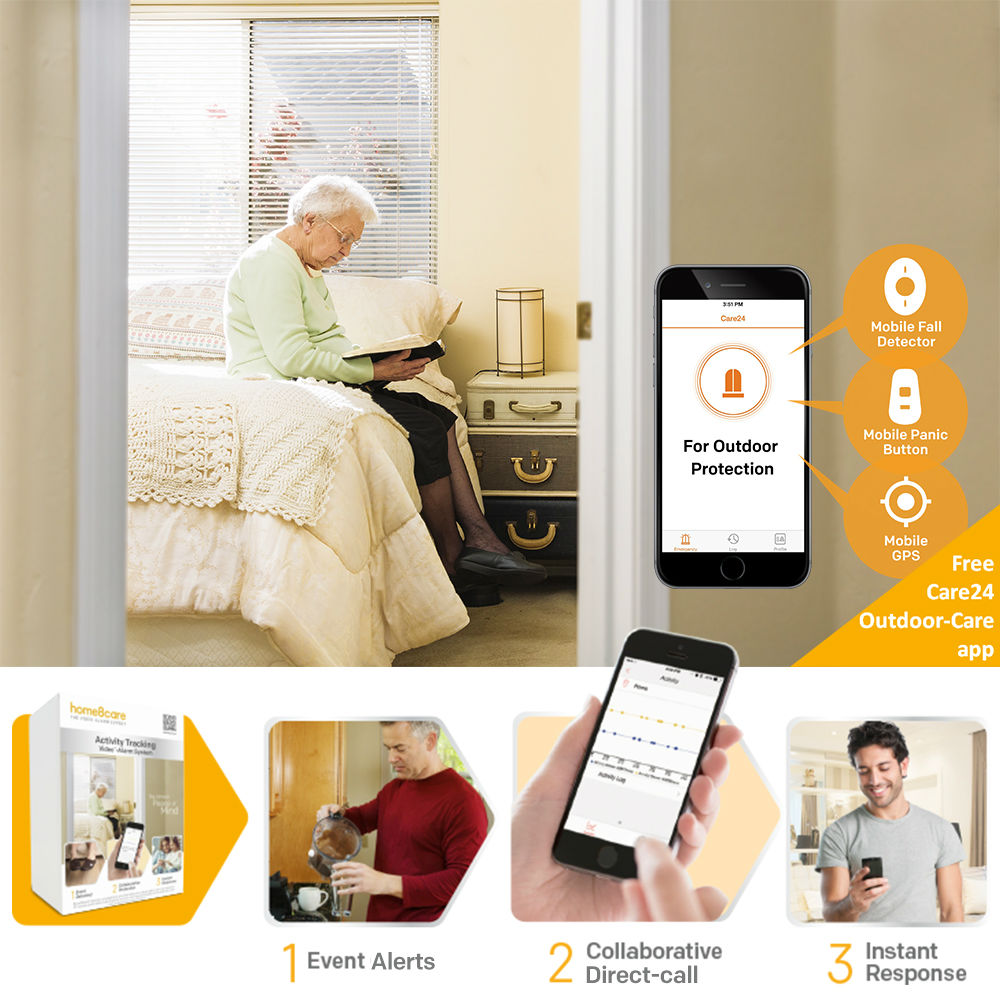 With bonus Outdoor Care App, the system provides comprehensive in-home and away-from-home care service for independent living. The app turns your mobile phone into a fall detector, a panic button, and a GPS tracker