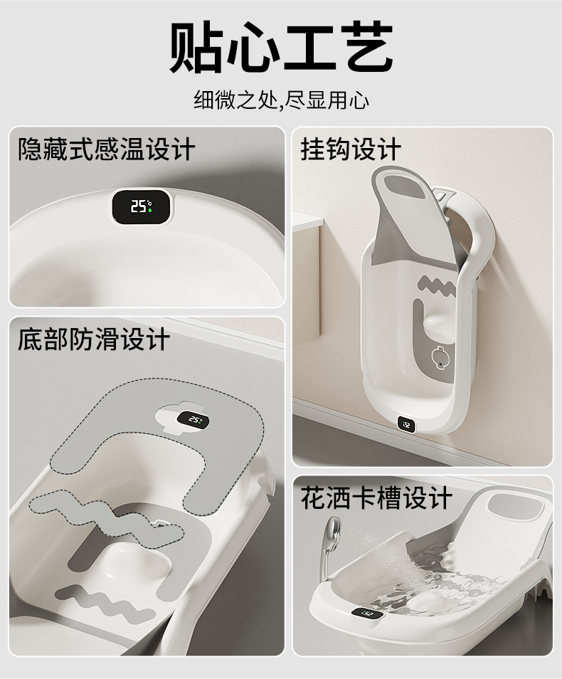 - Safety First: Stable structure with a safety lock mechanism that prevents accidental folding or shifting; non-slip bottom with anti-slip feet keeps the tub secure on wet surfaces