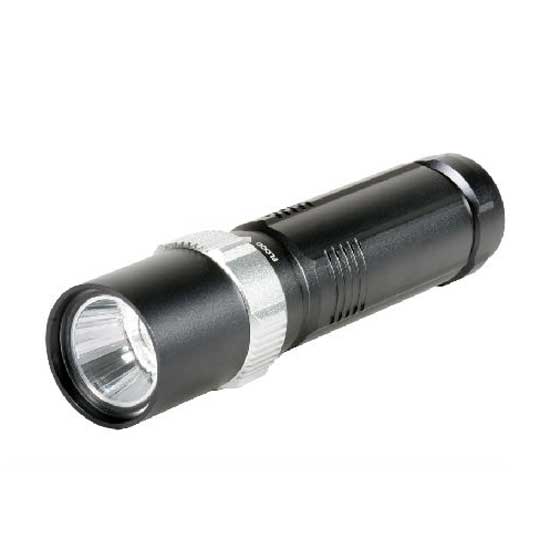 This rigid and compact LED flashlight is a great companion for nighttime activities. With branded European focusing beam technology, users can easily switch spot or flood light modes by twisting a dial. The heavy-duty LED flashlight is weather-proof.