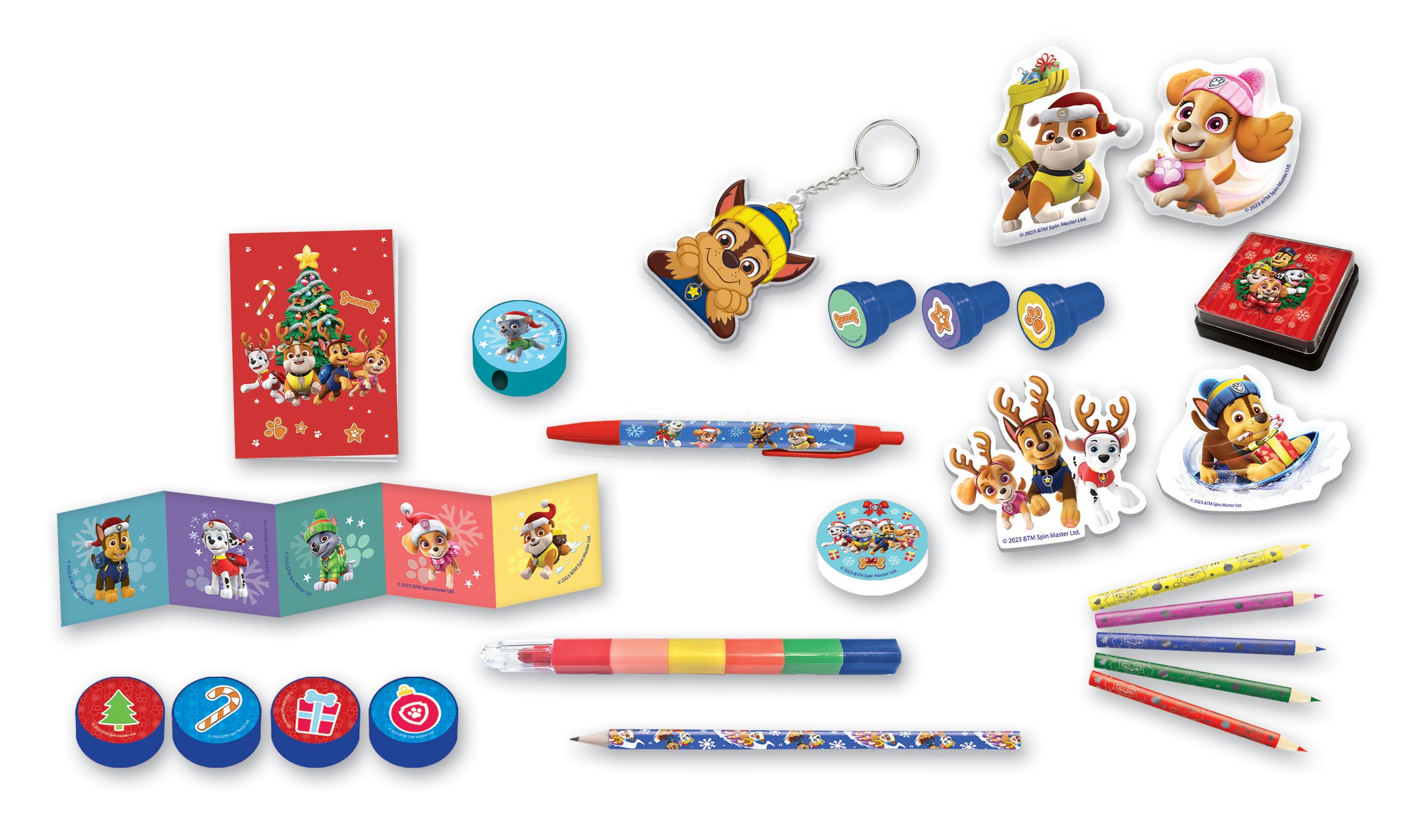 The advent calender contains 24 little surprises such as pencils, stickers, stamps, keychain, etc. in a popular motif.