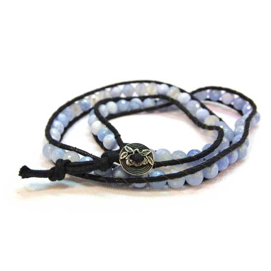 Showcased is a bracelet constituted by a chain of selected agate beads. They come in neat spheroidal shapes with sightly shades of light blue. This bracelet makes an ideal accessory to ornament your outfits.
