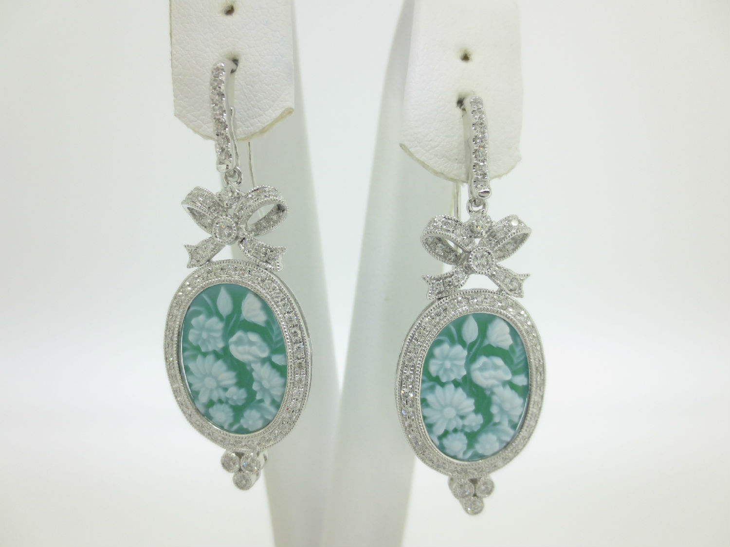 German agate cameo 13x18mm 136 diamonds 0.87ct 18k gold