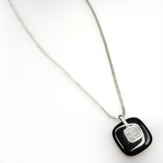 The center of the pendant is embedded with sparkling white crystals for added allure.