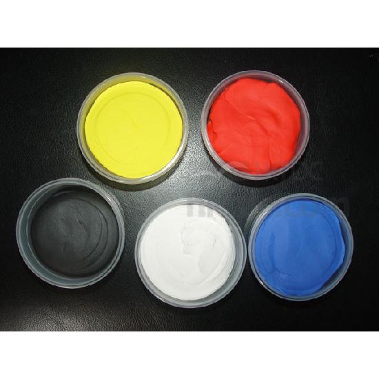 Water base paint can be kneaded into very easily and without mess to make an infinite range of colors with which to work. Of course, it can be colored with any kind of paint after it is dried.