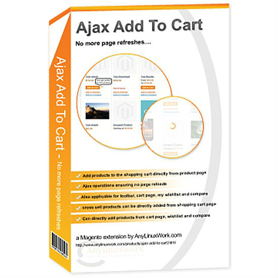 Ajax Add to Cart extension will help to add products to shopping cart directly from the category and the product pages without reloading the page everytime, using Ajax operations. This extension also provides add to compare and add to wish-list feature by Ajax operations from product and category pages. In shopping cart page, users can add cross-sell products to cart, compare and wish-list directly using the Ajax Add to Cart extension without page reload. This extension also allows users to add products to cart directly from wish list page. User would be able to add all types of products: simple, configurable, bundled, grouped, virtual and downloadable from the category page itself. For the products which require options to be selected before adding to cart (configurable, bundled or grouped), a light box iframe window will come up showing the options to be selected by user before adding products to cart. Ajax Add to Cart extension increases your sales by allowing your customers to shop continuously without several page reloads.