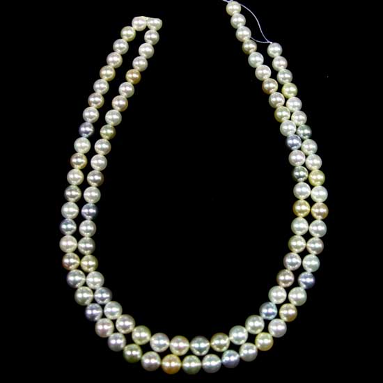 Showcased is a strand of Akoya pearls in multi colors. Every pearl is well crafted with high luster and a smooth surface. This shimmering natural pearl strand is ideal for different dainty jewelry designs.
