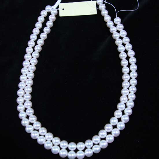 The natural Akoya pearl shows an elegant white color with high luster. Each pearl is finely polished with a consistent round shape and a smooth surface. This pearl strand is remarkable for making necklaces, earrings, bracelets, etc.