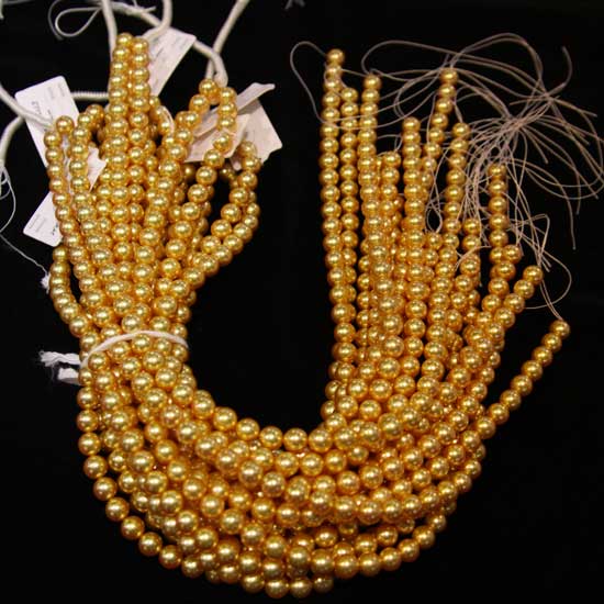 Presented are beautiful pearl strands made of precious Akoya pearls. The round pearls are dyed in a golden color with enchanting luster. The pearls add a classy touch to various styles of jewelry.