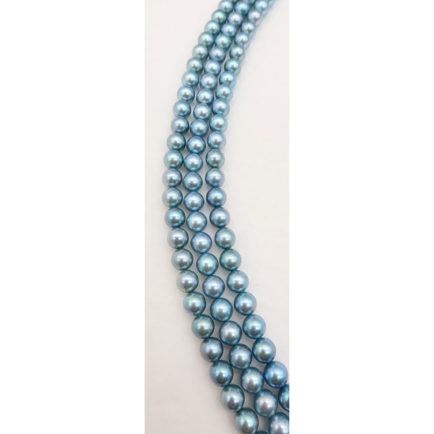 Japanese Akoya Pearl strands. Dyed gray color. The length 16inch. The size 6.0-9.0mm.