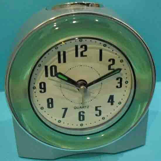 Featured is an alarm clock with a 3-hand design. It comes with a quartz movement and aluminum hands for added elegance and durability. This classy alarm clock makes a perfect bedside decoration.