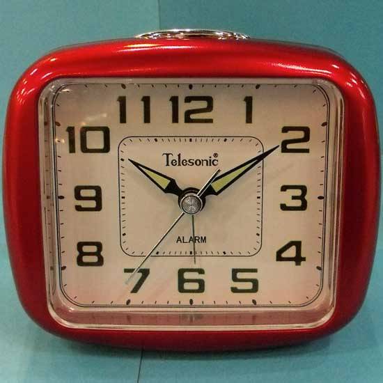 Featured is a compact alarm clock in an eye-catching color. The hour and minute hands come with a luminous coating for night viewing. The glossy finishing simply makes it a lively decoration by your bed.