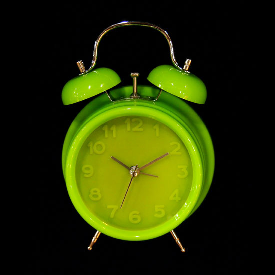 This apple green alarm clock features a cute and bright design. Fat rounded numeral markers decorate the pale green dial. This charming alarm clock is a decorative and practical addition to your home.