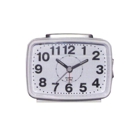 With bold, oversized Arabic numerals, this alarm clock is extremely easy to read. The 3-hand alarm clock is professionally constructed with a quartz movement for punctuality. The large button on the top lets you turn off the alarm clock easily.