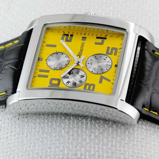 This is an alloy watch that is designed for men. This men's watch comes with a leather band for added durability. The rectangular-shaped dial face comes with three hands, three sub-dials and accurate hour markers for easy time reading.