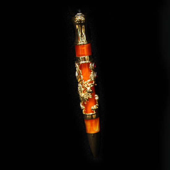 This pen is constructed with alloy for a lasting quality. The vibrant orange barrel is embraced with a skilfully crafted embellishment in gold. This gorgeous pen gives its users a distinguished character.
