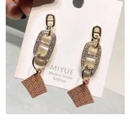As shown is a high-fashion crystal style gold plated alloy parts drop earring.